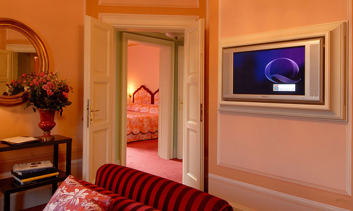 Junior Suite Top (45-60 кв. м) - номера расположены или в резиденции кардинала Tolomeo Gallio или в Queen's Pavilion. Просторный, удобный и роскошный номер с большой спальней (две кровати twin или одна двойная кровать по запросу) и гостинной зоной. С захватывающим дух видом на озеро. Некоторые номера с балконом. Мраморная ванная с джакузи, душем, ванной, купальный халат. Возможно объединение номеров.