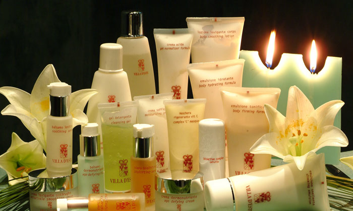 Процедуры проводятся с использованием уникальной косметической Spa-линии Villa d'Este, выработанной в результате серьезных научных исследований. Косметика Villa d'Este изготовлена из натуральных компонентов и содержит поливитаминные комплексы, растительные экстракты и ценные природные масла.