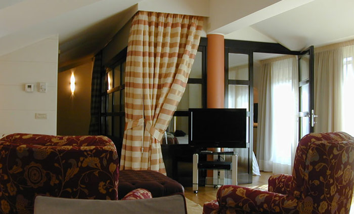 Suite - новый номер сьют, строительство которого было завершено не так давно, имеет прекрасный декор, а также вид на сад и частично - на озеро Комо. В номере царит атмосфера изысканной элегантности аристократической резиденции. Как и все другие номера, он оборудован с полным комфортом такими удобствами, как кондиционер, цветное спутниковое телевидение, платное телевидение Pay TV, мини-бар, прямая телефонная линия, WI-Fi Интернет, фен, депозитный сейф, звукоизолирующие окна и двери. В ванной комнате установлена ванна-джакузи.