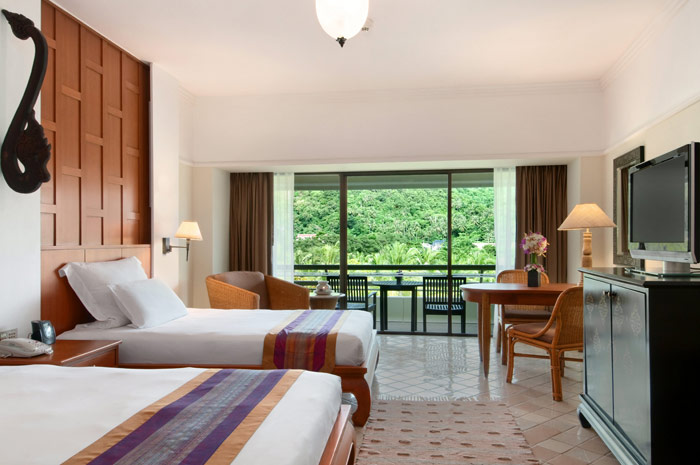 Отель построен в 1987 году, находится в красивой бухте Карон, которая славится белыми песчаными пляжами. Большая живописная территория c бассейнами, парком и пресноводными лагунами. Состоит их трех зданий разной этажности – Andaman Wing, Lotus Wing, Sai Thong Wing. Отель имеет развитую инфраструктуру, хороший тренажерный зал, великолепные теннисные корты. Подходит для любой категории туристов.