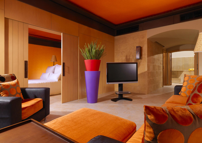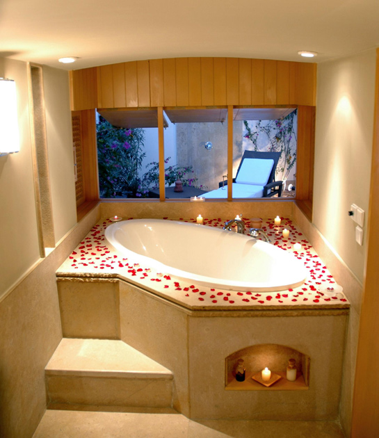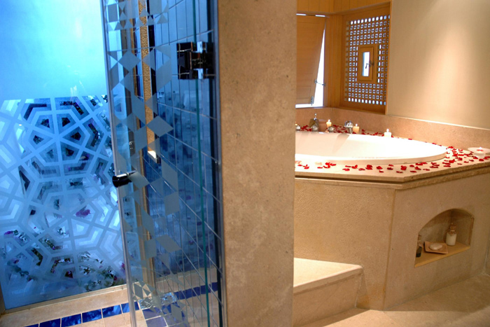 4 Deluxe Suites (48 кв. м) - прямой вид на море, терраса с джакузи, спальня, гостиная, ванна с гидромассажем.