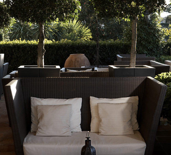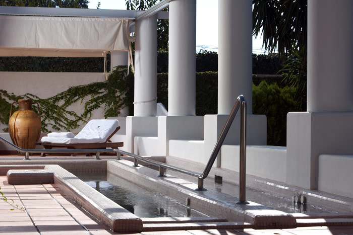 2 Double "Deluxe" Rooms with Private Pool and Garden (35 кв. м) - номер со сводчатыми потолками декором в средиземноморском стиле, состоит из спальни с зоной отдыха, ванной комнаты, отделанной травертином, террасы с садом и собственным подогреваемым бассейном (прибл.15 кв. м).