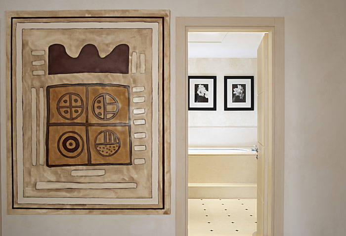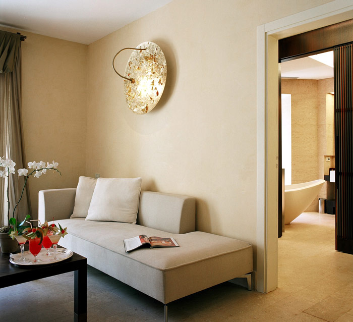Suite "Magritte" with Pool (50 кв. м) - номер выполнен в элегантном современном стиле и украшен картинами Michele Constantini в стиле художника-сюрреалиста Рене Магритта; состоит из спальни, гостиной, 2 ванных комнаты с ванной и отдельной душевой кабиной, гардеробной, террасы с садом и уникальным подогреваемым бассейном (прибл.15 кв. м), дно которого украшает одна из картин Магритта.