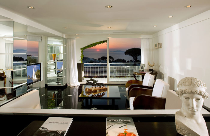 6 Junior Suites Sea Side (40 кв. м) - выполнен в средиземноморском стиле, состоит из спальни, гостиной, ванной комнаты, террасы с видом на море, острова Искья и Прочида.