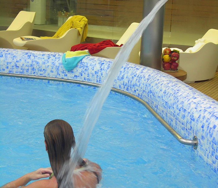 Также к Вашим услугам: джакузи, ароматерапия, разные виды душевых, различные виды массажа, тренажерный зал, сауна, турецкая баня с различными температурными уровнями.