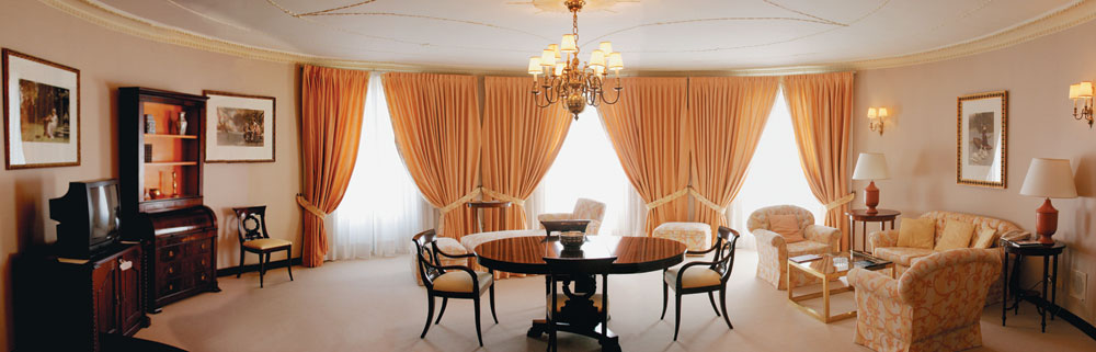 Интерьеры номеров оформлены в классическом стиле с использованием мебели из хороших сортов дерева и некоторых отреставрированных фрагментов обстановки начала прошлого века. Просторные и светлые номера отличает прекрасная обивка и наличие всех современных удобств.