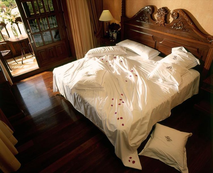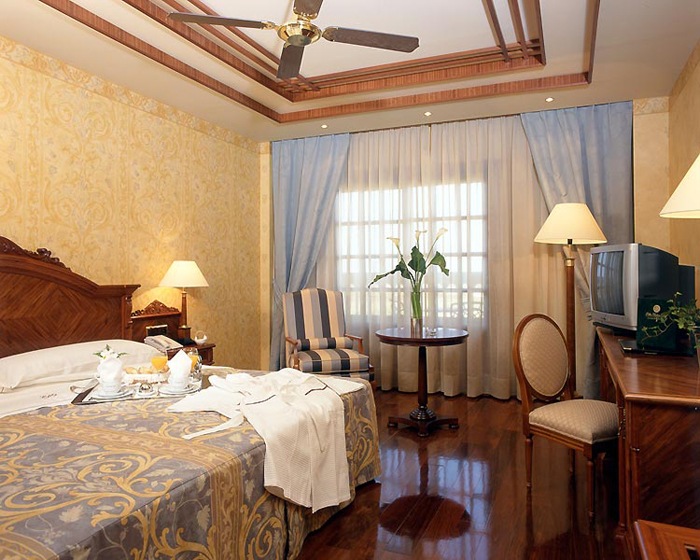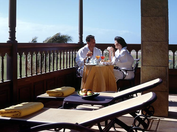 51 Double luxury Rooms - номер в канарском стиле в теплых терракотовых тонах с отдельной террасой с видом на море и гольф-поле. В номере имеется: ванная комната с ванной, душем и туалетом, кондиционер, очень широкая двуспальная кровать (king size), прямой телефон, спутниковое телевидение, DVD/CD-плеер, сейф, набор для кофе/чая, фен, банные халаты, тапочки.