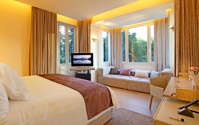 9 Deluxe Rooms (40 кв. м) - элегантный номер, состоит из спальни, гостинной, столовой, ванной комнаты, 2-х террас (27 кв. м и 60 кв. м), звукоизоляция. 32-дюймовый телевизор с плоским экраном.