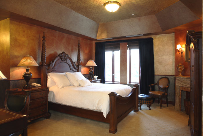 11 Chateau Rooms (30 - 34 кв.м) - cтандартные номера со старинной обстановкой. Декор был смоделирован по проектам красивых и изящных французских Замков Франции. Номер состоит из спальни с кроватью King size, с письменным столом и стулом, и роскошной ванной комнаты, отделанной мрамором, с большой ванной, душем и умывальником.
