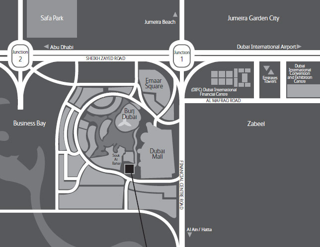 Расположение отеля The Address Downtown Burj Dubai: