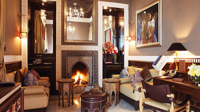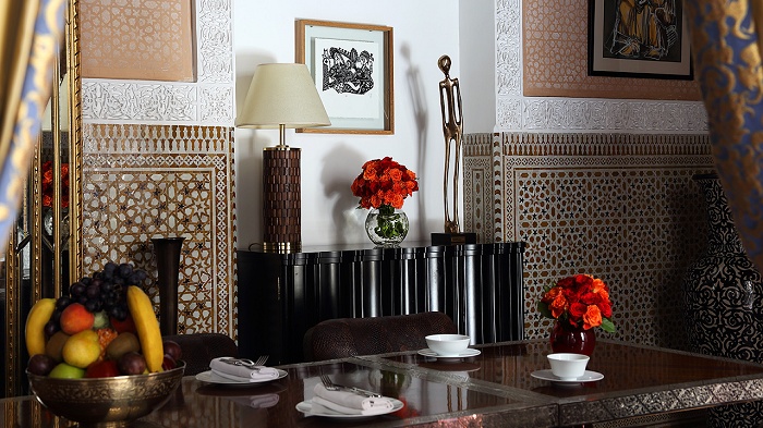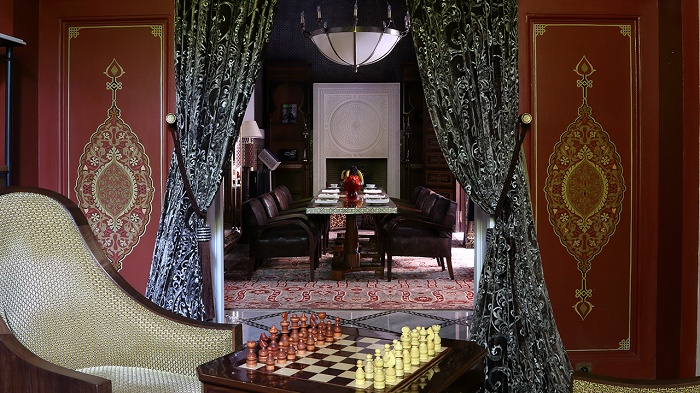 Отель состоит из главного здания в центре парка и отдельных домов-риад, построенных с соблюдением всех канонов классического образца жилой архитектуры Магриба. Интерьеры комнат оформлены в традициях восточной роскоши: резная мебель ручной работы, антиквариат, декор из шелка и парчи.