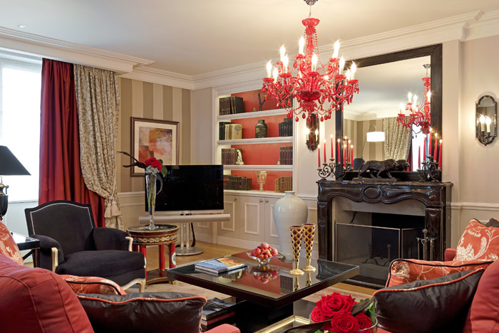 1 Leman Suite (110 кв. м) - декорированный интерьер-архитектором Пьер-Ив Рошоном, этот номер, с преобладающими черными, красными и бежевыми тонами отождествляет стиль Современной эпохи. Просторный номер, с панорамным видом на Женевское озеро на Альпийские горы и на сад отеля. Номер состоит из спальни с видом на озеро и из гостиной с камином и обеденным столом. В номере так же имеется отдельная кухня и балкон с двумя удобными креслами. Так же есть рабочий стол с доступом в Интернет, с факсом и с СД-плейером. Расположен на 3-м этаже. Кинг-бед 200 х 210 см. Кроватка для ребенка до 2-х лет предоставляется бесплатно. Дополнительная кровать (платно). В ванной комнате большой душ с эффектом дождя, отдельная туалетная комната. Максимальное количество взрослых в номере - 2 взрослых и 1 малолетний ребенок (0-1.99 год) или 1 взрослый, 1 ребенок (2- 11.99 год) и 1 малолетний ребенок.