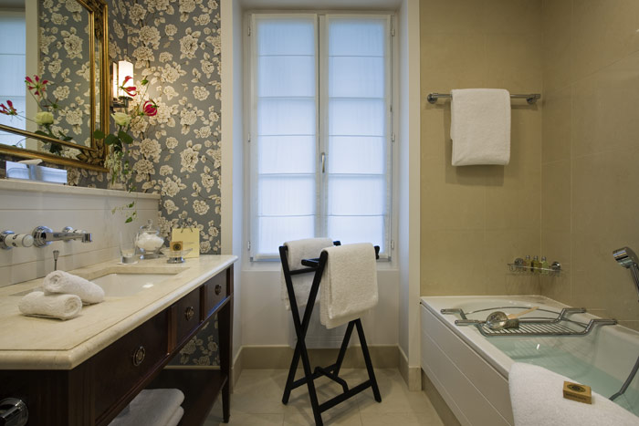 1 Vergere Suite (64 кв. м) - номер с преобладающим светло-голубым тоном, выполнен в Французском стиле уникального архитектора Пьера-Ив Рошон. Просторный номер, с панорамным видом на Женевское озеро и Альпийские горы. Номер состоит из двух спален, двух ванных комнат (с душем и ванной, 1 отдельная туалетная комната), гостиной и балкона. В номере так же есть два рабочих стола с доступом в Интернет. Расположен на первом этаже. Две отдельные кровати 200 х 210 см. Кроватка для ребенка до 2-х лет. Дополнительная кровать (платно). Максимальное количество взрослых в номере - 4 взрослых и 1 малолетний ребенок (0-1.99 год) или 2 взрослых, 2 ребенка (2- 11.99 год) и 1 малолетний ребенок.