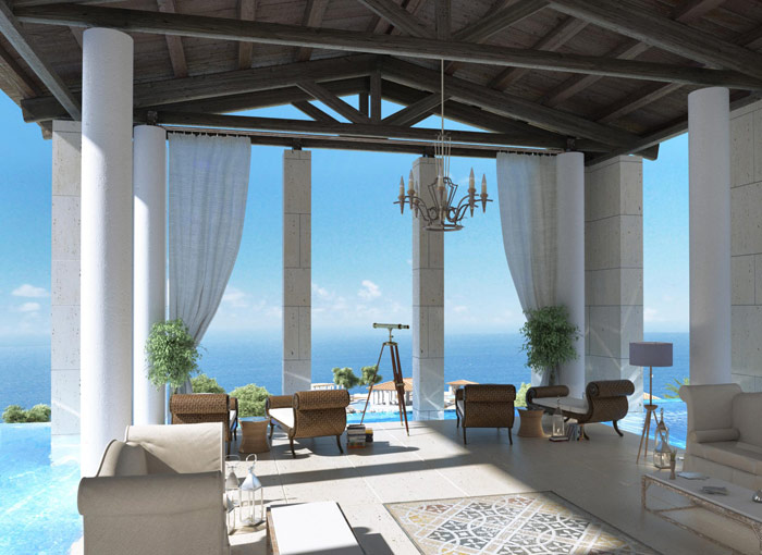 Просторные номера имеют индивидуальные интерьеры, сочетающие греческие традиции и элементы современного дизайна, из панорамных, от пола до потолка окон и с балконов номеров открывается чарующий вид на сверкающую гладь Ионического моря.