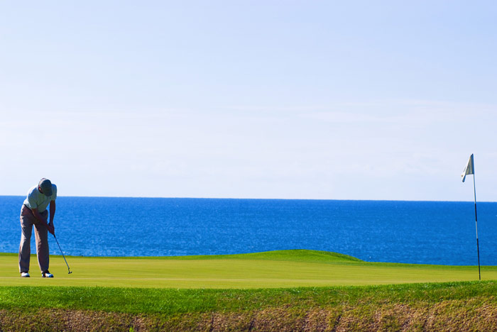 Deluxe Sea View Room (43 кв. м) - выполнен в пастельных песочно-серых тонах и отделан мрамором кремовых оттенков и темным деревом, состоит из спальни с уголком для отдыха, ванной комнаты, меблированной террасы с видом на море, гольф-поле или бассейн.