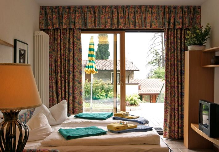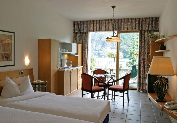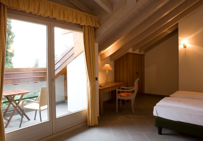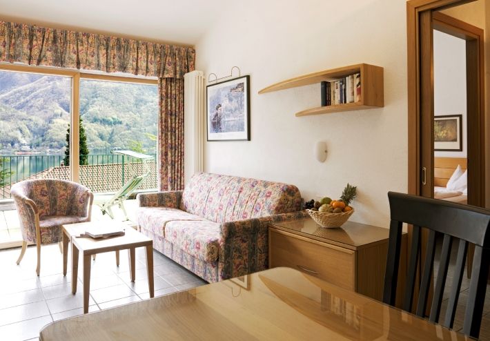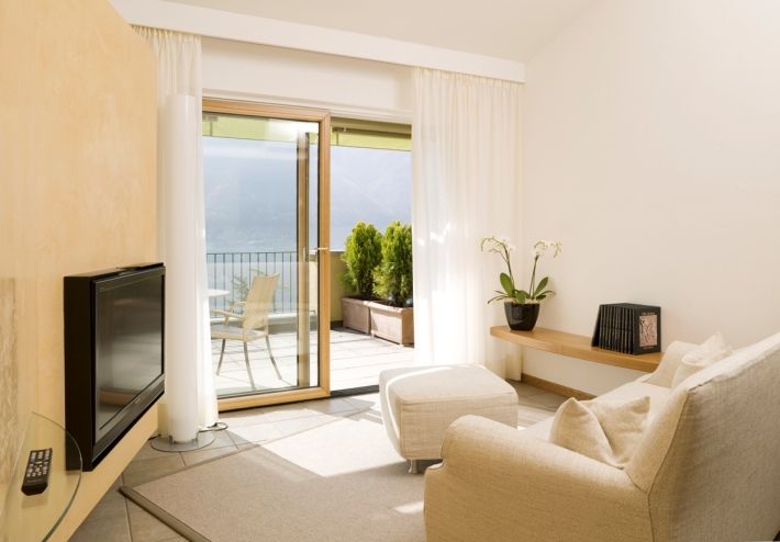 Lake View Suite (45 кв. м) - просторные номера с современной обстановкой. Состоят из спальни, гостиной комнаты с диваном - кроватью, ванной комнаты с душем. Балкон выходит на юг или сад с видом на озеро Лугано. Максимальное размещение - 4 человека.