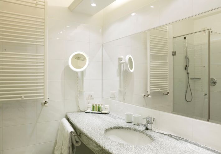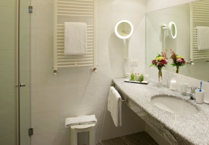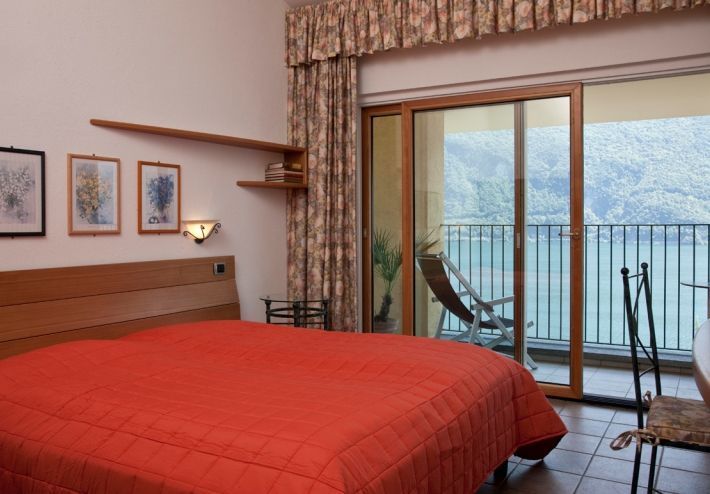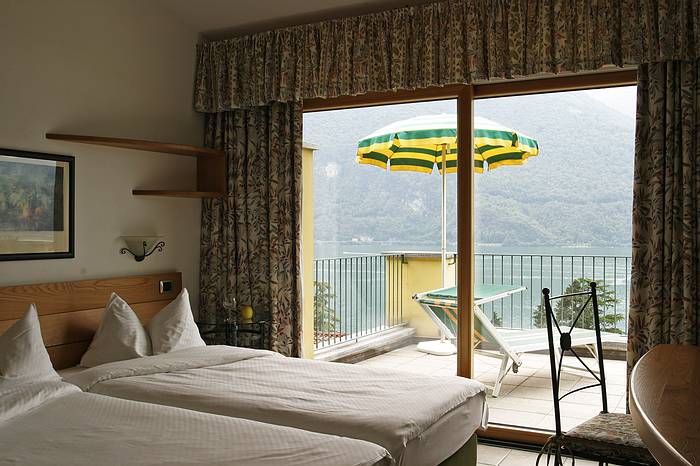 Lake View Junior Suite (30 кв. м) - просторные комнаты с современной обстановкой. Состоят из спальни, ванной с душем, есть маленький стол и два стула. Балкон с выходом на южную сторону и с видом на озеро Лугано. Максимальное размещение - 2 человека.