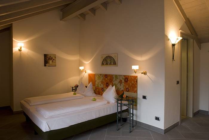 Attici Family Deluxe (первый этаж - 50 кв. м, второй этаж - 25-35 кв. м) - номер расположены в 200-летнем каменном доме Gardenia прямо рядом с бассейном. Гостиная (с двойным диваном - кроватью) расположена на первом этаже рядом со спальней, ванной комнатой с душем и полностью оборудованной кухней. Лестница ведет к чердаку, показывая другую спальню и вторую ванную комнату на верхнем этаже. Есть два балкона, выходящие на южную сторону с видом на озеро Лугано, Максимальное размещение - 6 человек.