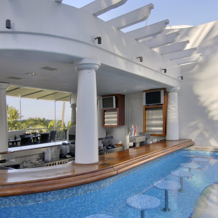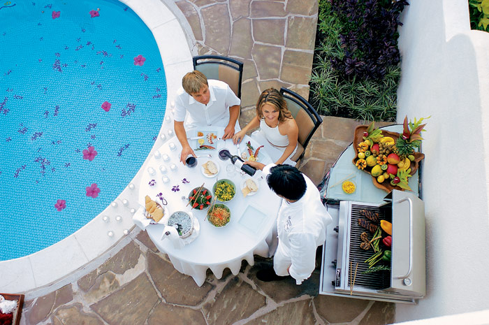 Poolside Suite (78 кв. м) — с видом на лагунный бассейн или сад; состоят из спальни с одной кроватью King или двумя кроватями Double, гостиной с софой и ванной комнаты.