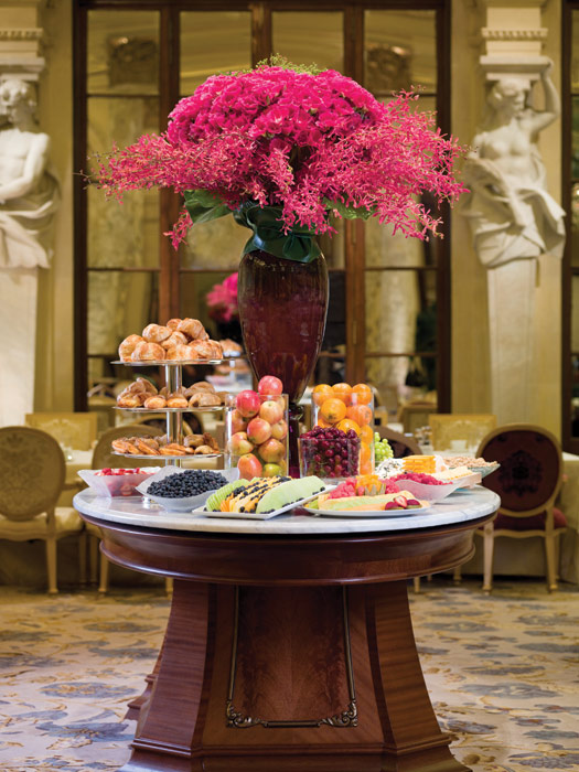 The Champagne Bar – бар-салон с видом на Пятую авеню и фонтан Pulitzer. Большой выбор шампанского, вина, икра, кофе и выпечка.
