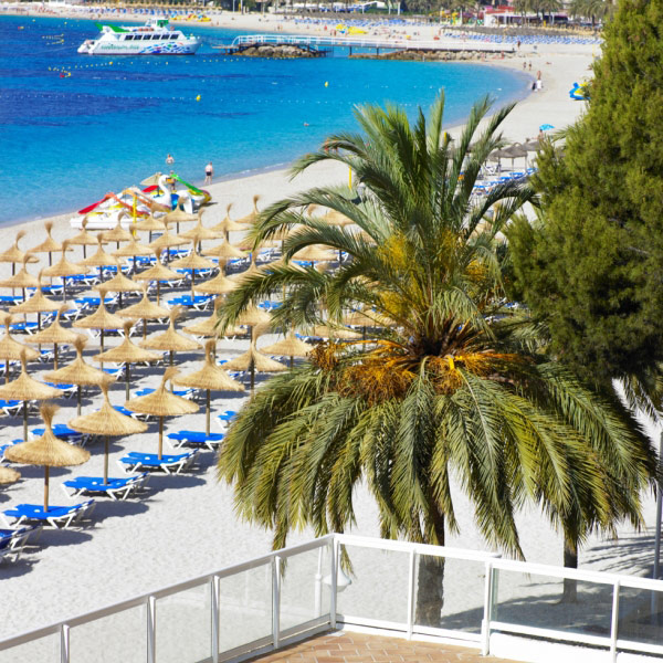 Пляж: муниципальный, песчаный (Playa de Magaluf). Зонтики, шезлонги, матрасы – платно. У бассейна: шезлонги – бесплатно. Пляжные полотенца – залог.