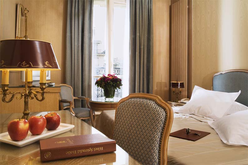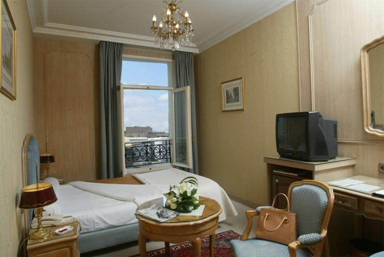 Standard Room - окна могут выходить либо во внутренний дворик отеля, гарантирующий посетителям тишину и спокойствие, либо на улицу, раскрывающие уникальный вид на Триумфальную арку и Елисейские поля.