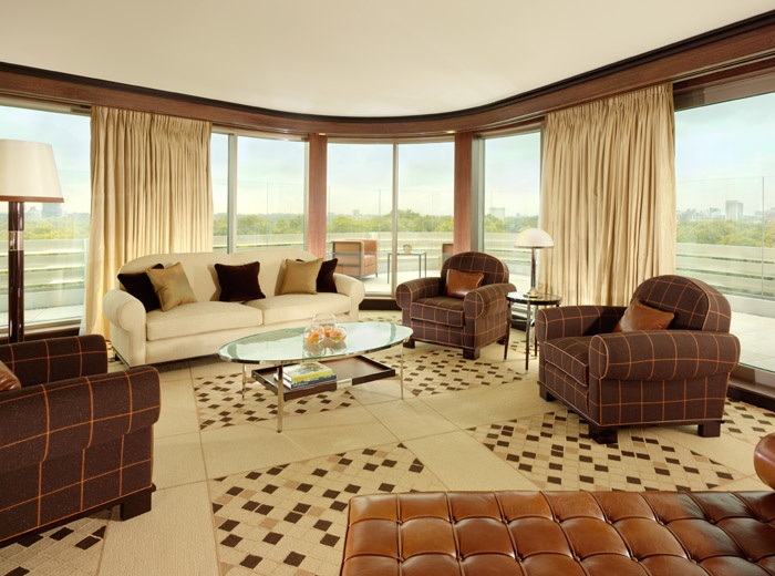 Curzon Suite (80 кв.м.) - номера имеют угловое размещение, начиная с 6 этажа; состоят из спальни с кроватью king size, гостиной зоны, мраморной ванной комнаты с ванной и отдельным душем, двумя раковинами. Вид на Гайд парк и улицы Park Lane и Curzon.
