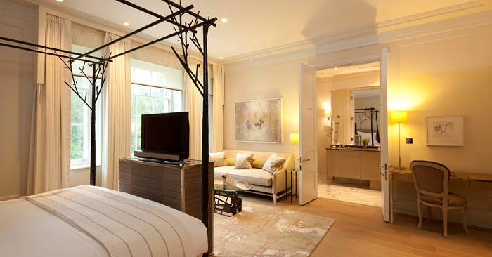 Дизайн интерьера выполнен в английском стиле, позволяющем почувствовать себя в уютном загородном доме. Во всем отеле дубовый пол, украшенный прекрасными, выполненными на заказ, коврами. В отделке использовалась шерсть, кашемир, мохер и ткани. Преобладание натуральных приглушенных цветов еще раз подчеркивает изысканность и сдержанность Британии.
