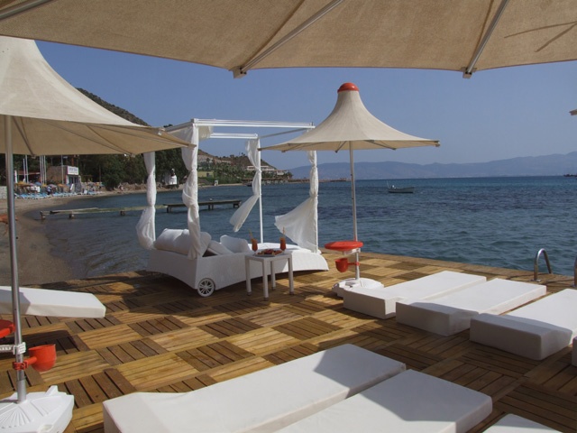 в бухте Акярлар, в 25 км от центра Бодрума, в 60 км от аэропорта Milas.