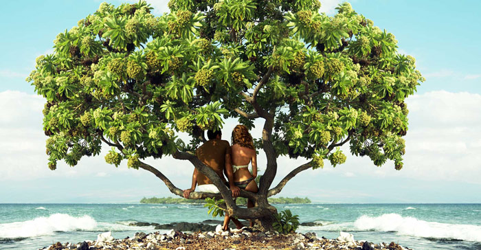 Ocean Front Room - состоит из спальни, ванной комнаты, террасы с видом на океан и пляж с пальмами.