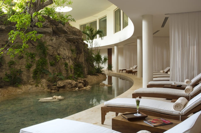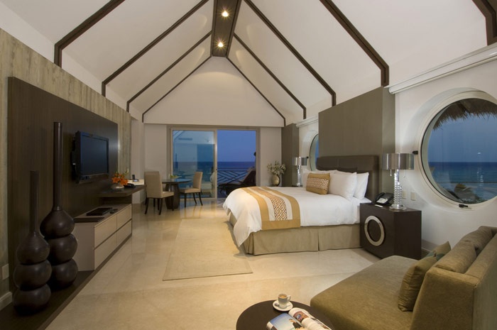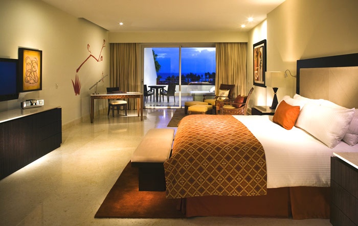 Отель Grand Velas All Suites & Spa Resort Riviera Maya раскинулся среди буйной тропической растительности на белоснежном пляже. Отель состоит из 3 секций: The Master Section, The Ambassador Family-Friendly Area, The Exclusive Grand Class Area. В уютных спальнях и гостиных отеля преобладают теплые бежевые тона и четкие, лаконичные линии. Материалы, использованные в декоре номеров, стекло, контрастирующее с мебелью из темного дерева, привезенной из Бали, создают в отеле ощущение свежести и прохлады, недостающее жаркому тропическому климату.