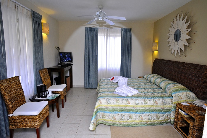 Номера расположены в бунгало с крышами из пальмовых листьев. Солнечные и жизнерадостные номера оформлены в полинезийском стиле - деревянные потолки, яркие краски и разноцветные ткани.