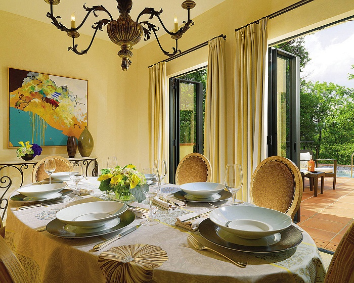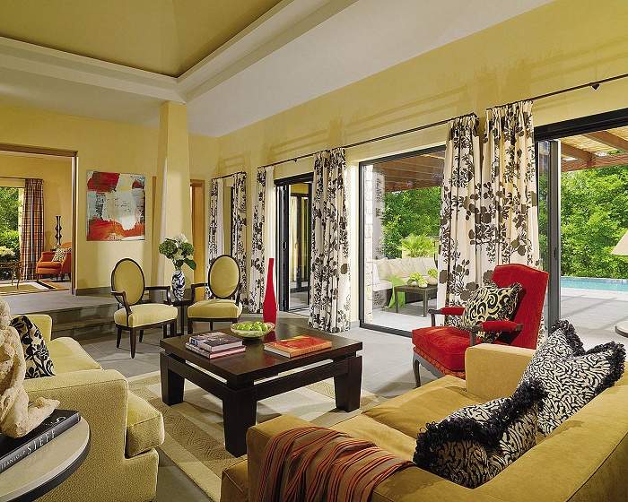 Deluxe One-Bedroom Villa (100 кв. м) - состоит из спальни с кроватью king-size, гостиной с диваном кроватью, обеденной зоны, мраморной ванной комнаты с ванной, душевой кабиной и подогреваемым полом, гостевой туалетной комнаты, террасы с видом на долину, горы, деревни или поля для гольфа. Расположена на 1-м этаже. Макс. размещение - 3 взрослых или 2 взрослых и 2 ребенка.