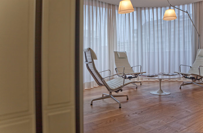 Executive Suite Jean Nouvel (60 кв. м) - состоит из спальни, гостиной, ванной комнаты, туалета, холла. Все номера имеют большие окна с панорамным видом на город. Расположены на 12-м этаже и спроектированы знаменитым французским архитектором Жаном Нувелем (Jean Nouvel). Макс. размещение – 2 чел. Гостям предоставляются дополнительные услуги.