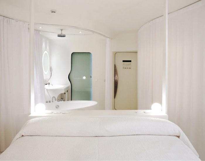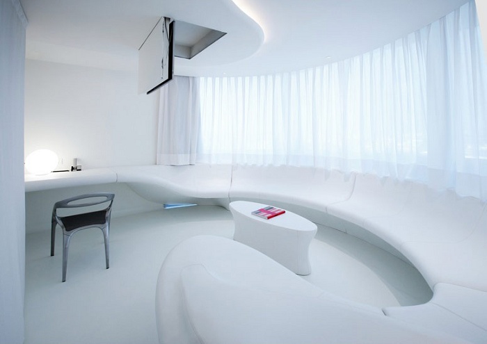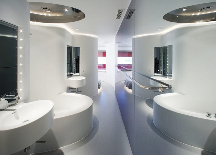 Space Club by Zaha Hadid (25-30 кв. м) – состоит из спальни с кроватью queen и большими окнами с панорамным видом на город. Гости погрузятся в мир минимализма с вьющимися формами и ясными белыми поверхностями пола и стен. Есть вариант оформления в черном цвете. Расположены на 1-м этаже, для некурящих. Макс. размещение – 2 чел. Гостям предоставляются дополнительные услуги.