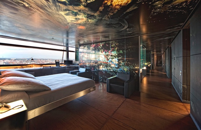 Presidential Suite Jean Nouvel (140 кв. м) - и состоит из 2-х спален (одна из них - панорамная со стеклянной стеной от пола до потолка), гостиной, столовой, 2-х ванных комнат, 2-х туалетов, гостевого туалета, холла. Вид на город. Расположены на 12-м этаже и спроектированы знаменитым французским архитектором Жаном Нувелем (Jean Nouvel). Макс. размещение – 4 чел. Гостям предоставляются дополнительные услуги.