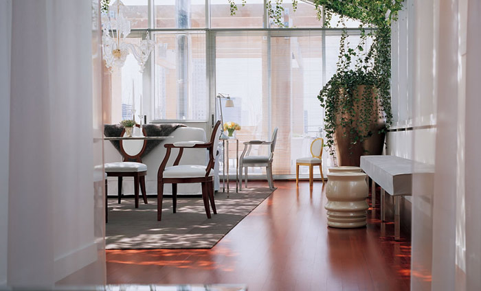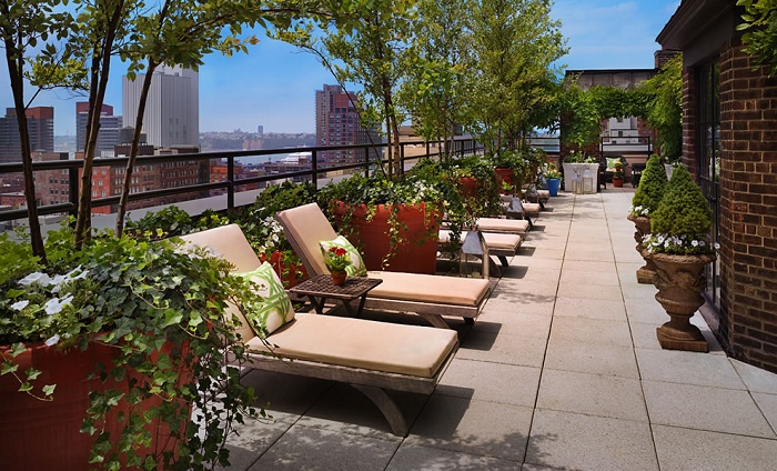 Penthouse (139 кв.м) - просторный роскошный номер, расположенный на последнем 24 этаже отеля, обставлен дизайнерской мебелью от Филиппа Страка, украшен светильниками из муранского стекла. Убранство и интерьер комнаты выполнены на заказ по специальным эскизам. Включает: зимний сад со стеклянными стенами, где находятся гостиная с камином и столовая, спальню, ванную комнату, дополнительную туалетную комнату, огромную меблированную, закрытую тентом, террасу с панорамным видом на Манхэттен и реку Гудзон. Размещение – 2-4 человека.