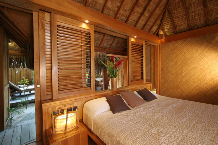 20 Overwater Bungalows (61 кв.м) - состоит из спальни с кроватью king-size, гостиной зоны, ванной комнаты с ванной и отдельной душевой, просторной открытой меблированной террасы с зоной отдыха, террасы с душевой под открытым небом и лестницей, ведущей в воду. Стеклянные ночные и журнальные столики в центре комнаты позволяют наблюдать за красочной подводной жизнью лагуны, а с помощью отодвигающейся столешницы можно покормить рыбок. Расположены на сваях над водой. Вид на гору Otemanu.