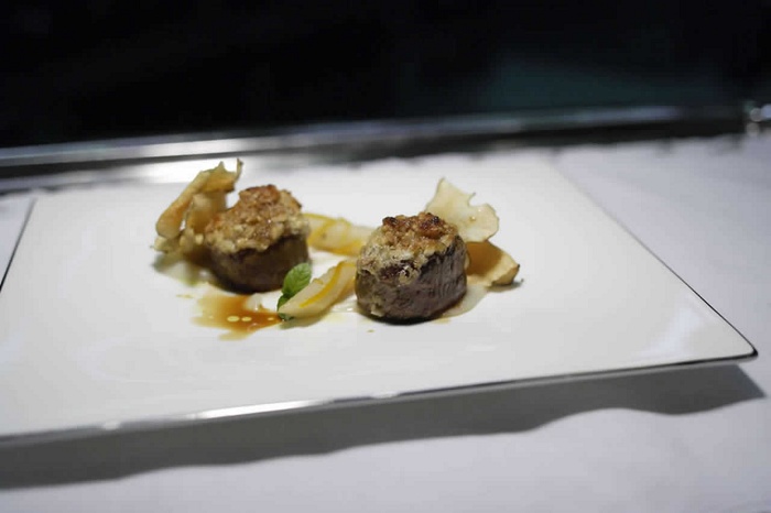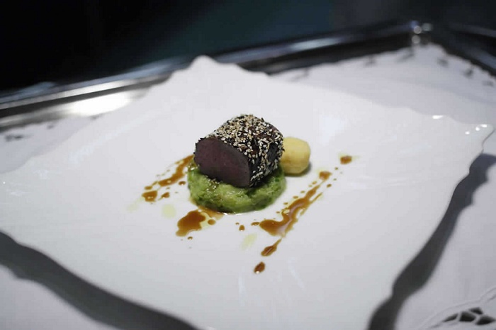 Здесь вас удивят лобстером, приготовленным на гриле, утиной печенью с бальзамическим уксусом, лягушачьими лапками с чечевицей и травами, приготовленной на вертеле утиной грудкой с запеченными ананасами, молочным поросенком с луком шалот под кисло-сладким соусом и соусом из свежего орегано… А на десерт подадут хрустящий шоколад, который подается с манговым чипсом на подушке из воздушного молочного шоколада под соусом из манго, желе на розовой воде из апельсинов (аккомпанируется амаретто с мороженым кампари и карамельным попкорном) или фруктовым puzzle из земляничного мусса, мягкого лавандового мороженого, паннакоты на каркаде, желе из ромашки и розового бисквита.