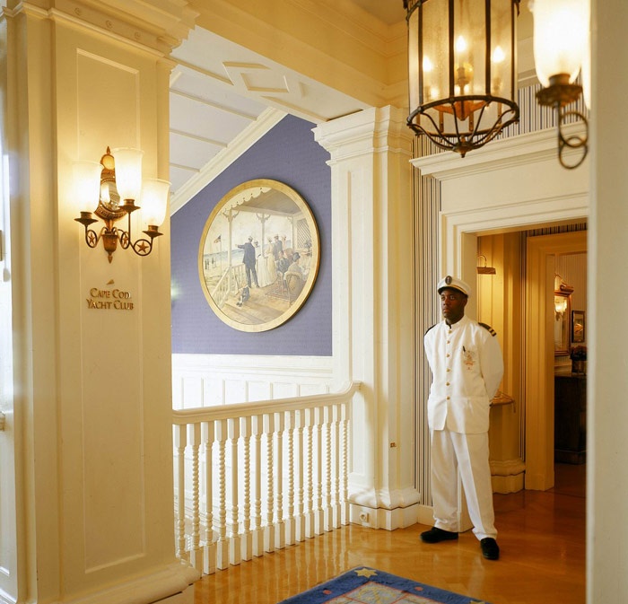 Disney HotelsDisney's Newport Bay Club - крупнейший отель в парке Disneyland и один из самых больших отелей в Западной Европе. Здание стилизовано под морской курорт Новой Англии XIX в. В декоре используется символика морских путешествий — географические карты, различные глобусы, аквариумы, окна-иллюминаторы. Интерьеры номеров выдержаны в сине-белой гамме.