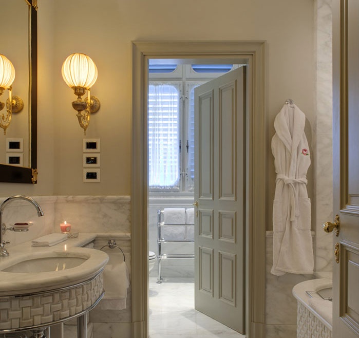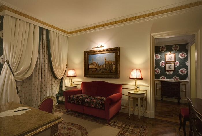 Интерьеры оформлены в неоклассическом стиле. Из окон отрывается превосходный вид на Флоренцию, тосканские холмы или сады отеля.