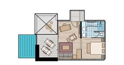 1 Teremoana Lanai Suite (60 кв. м) – состоит из спальни с кроватью king-size, гостиной зоны с 2-мя диванами-кроватями, ванной комнаты с ванной и отдельной душевой кабиной, гостевой ванной комнаты, террасы с обеденной зоной. Расположены в главном здании.