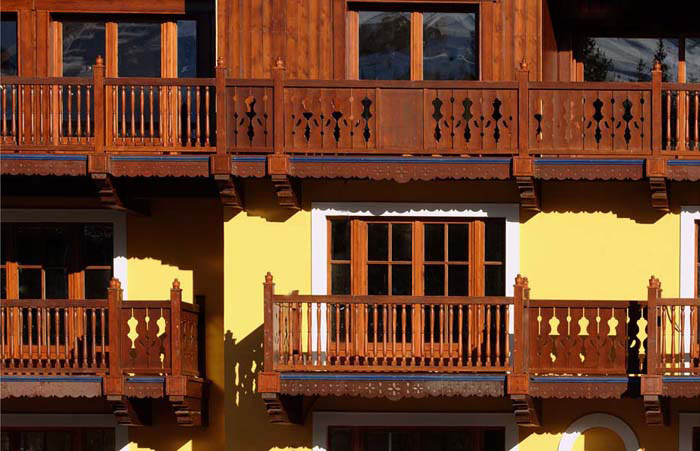 Superior Room (45 – 50 кв.м) - номер оформлен в современном савойском стиле, состоит из спальни с гостиной зоной, ванной комнаты и балкона с видом на шале в районе Jardin Alpin.