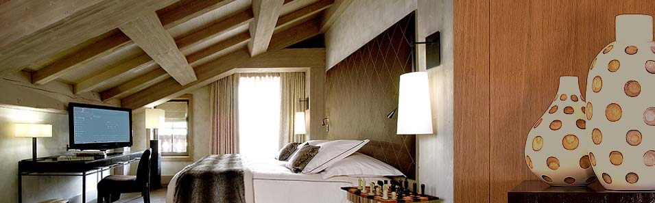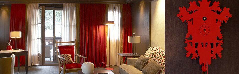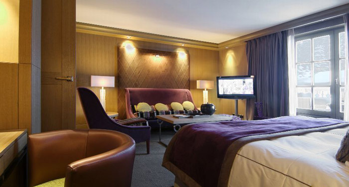 Deluxe Room (прибл. 50 кв.м) - номер украшен оригинальными работами дизайнера Жилля Каффье (Gilles Caffier), состоит из спальни с гостиной зоной, ванной комнаты и балкона с видом на горные склоны и трассы Jardin Alpin.