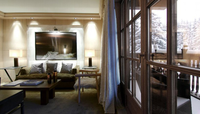 Deluxe - Superior Room - выходит на южную сторону, украшен керамикой от Пьера Дюбуа (Pierre Dubois), состоит из спальни с гостиной зоной, ванной комнаты, просторной террасы с видом на самый высокий пик Куршевеля — гору Солир. Номера этой категории идеально подходят для семейного размещения, так как могут соединяться.