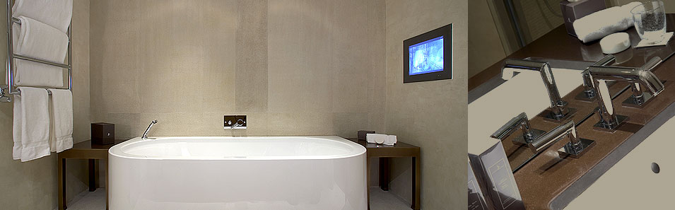 в ванной комнате есть интерактивная цифровая система (телевидение, аудио, видео и Интернет)