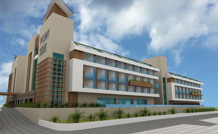 Отель построен в 2011 году, общая площадь 8 500 кв. м. Отель состоит из трех 4-этажных корпусов.Расположение отеля Port Side Resort Hotel: