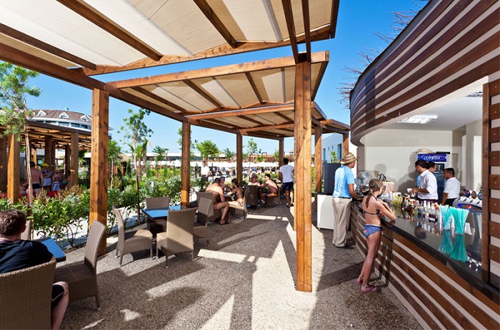 Пляж: собственный, песчаный. На пляже и у бассейна: зонтики, шезлонги, матрасы, пляжные полотенца – бесплатно.