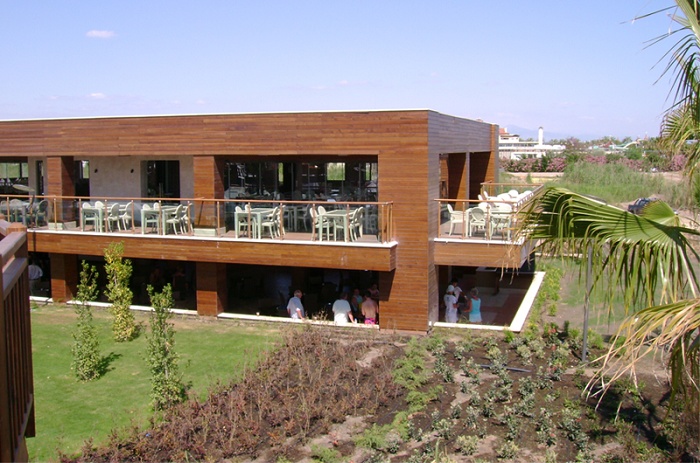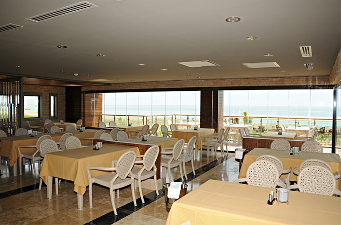 на самом берегу моря в районе Богазкент (Bogazkent), в 3 км от поселка Белек, в 40 км от центра Анталии, в 45 км от аэропорта Анталии.