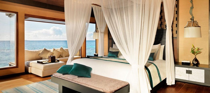 2 Ocean Sanctuarys/Sunset (340 кв.м.) – состоит из 2-х спален (в одной - кровать king size, в другой - 2 односпальные кровати), гостиной, гардеробной, кабинета, 2-х ванных комнат, гостевого туалета, террасы с персональным бассейном и обеденной зоной, террасы-солярия с лежаками и спуском в воды лагуны. Расположены на сваях в водах лагуны. Панорамный вид на океан. Макс. размещение - 4 взрослых и 2 ребенка до 12 лет